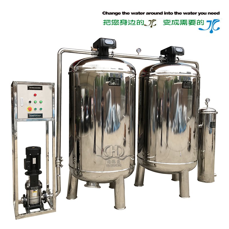Activated carbon has a very strong adsorption and filtration performance, and has a strong adsorption effect on residual chlorine, heterochromatic, peculiar smell, organic matters, etc. in water. As the reverse osmosis membrane is very sensitive to residual chlorine and organics, it is necessary to configure activated carbon to absorb residual chlorine and organics, so that the residual chlorine in the outlet water is ≤ 0.1mg/l, SDI ≤ 4, the first can meet the water supply requirements of the reverse osmosis membrane. Second, it can greatly improve the original taste of the source water. It can be backwashed at any time through multi-channel control valve or steam operated butterfly valve to wash away the colloid and other pollutants on its surface, prevent the surface of the activated carbon from being surrounded by impurities, prevent it from blocking, and restore its treatment capacity.