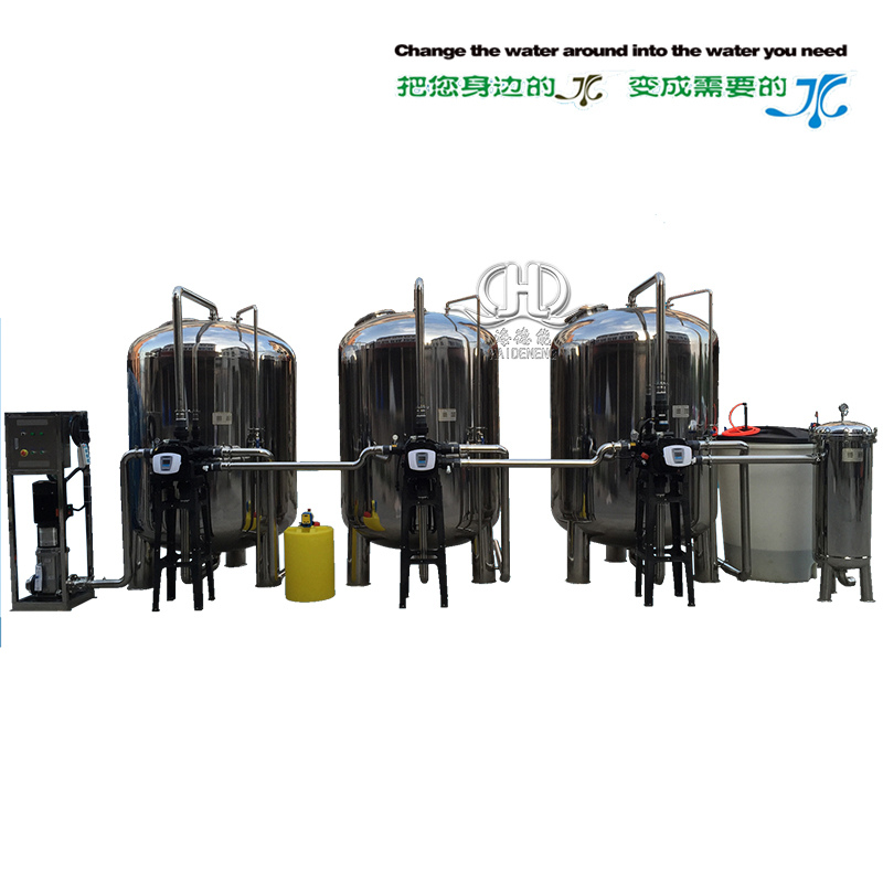 Activated carbon has a very strong adsorption and filtration performance, and has a strong adsorption effect on residual chlorine, heterochromatic, peculiar smell, organic matters, etc. in water. As the reverse osmosis membrane is very sensitive to residual chlorine and organics, it is necessary to configure activated carbon to absorb residual chlorine and organics, so that the residual chlorine in the outlet water is ≤ 0.1mg/l, SDI ≤ 4, and the first can meet the water supply requirements of the reverse osmosis membrane. Second, it can greatly improve the original taste of the source water. It can be backwashed at any time through multiple control valves or steam operated butterfly valves to wash away the colloid and other pollutants on the surface, prevent the surface of the activated carbon from being surrounded by impurities, prevent it from blocking, and restore its treatment capacity.